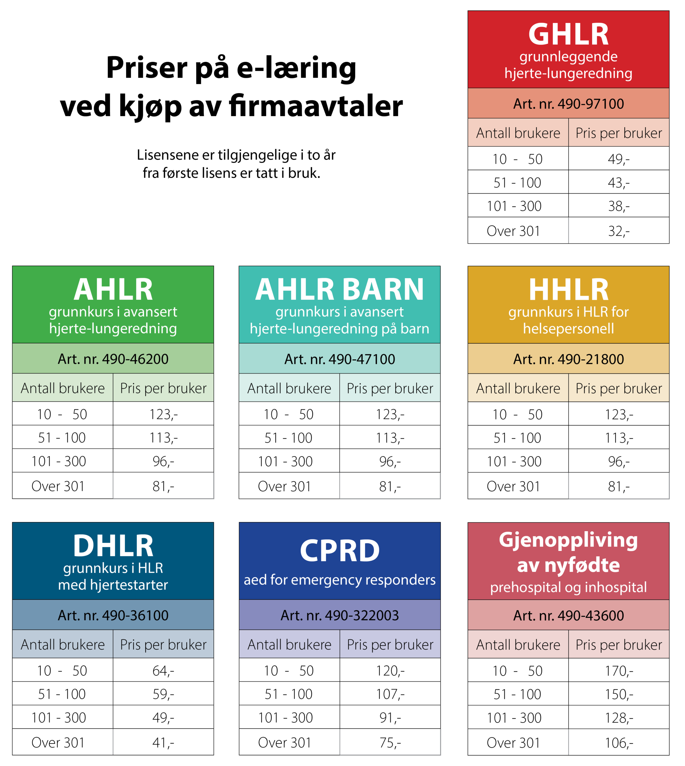 Ved firmaavtale skal alle brukere av avtalen opprette egen bruker på www.nrr.org, med eget brukernavn og passord. For å aktivere e-bok / e-læring, benyttes en felles lisenskode som sendes bestiller etter av firmaavtale er signert.